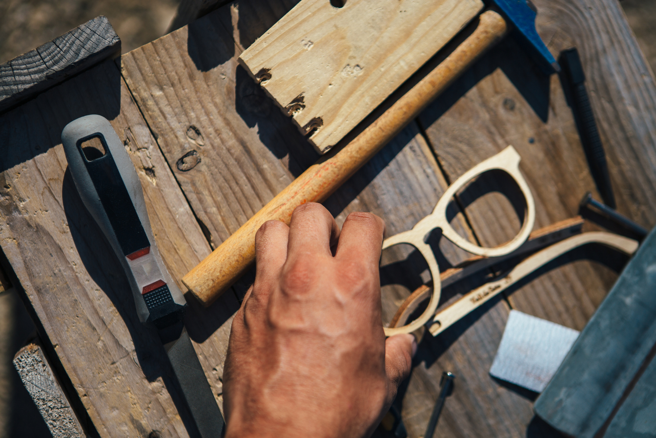 Once the wood has been prepared, it enters the shaping stage. Here, our skilled artisans carve each piece into the distinct, iconic shapes of our sunglasses. Precision and an eye for detail ensure every pair has its own unique character while maintaining consistent quality.